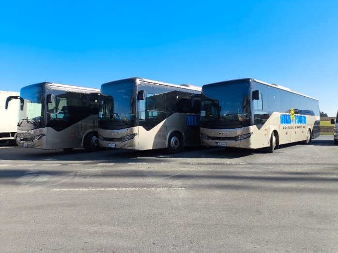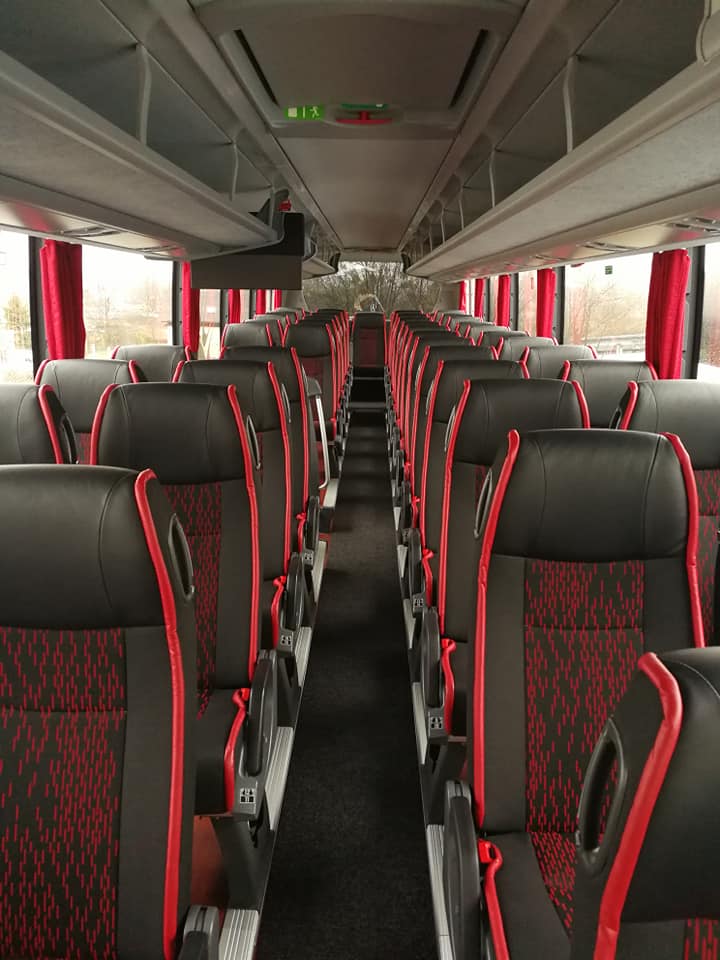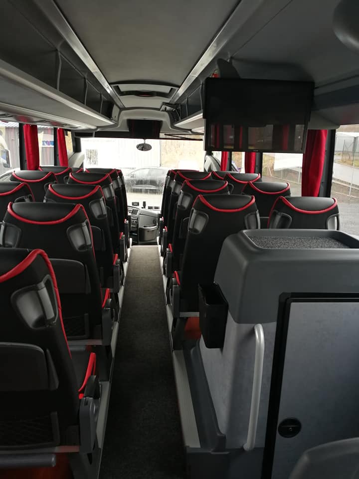 Rok výroby: 3x 3/2025 IVECO EVADYS + I/2019 SCANIA ……plní nejpřísnější emisní normu: EURO 6 Vybavení autobusů: 48 komfortních sedadel pro cestující (sedadla jsou všechna sklopná a zároveň výsuvná do uličky, TOP luxusní čalounění včetně koženého potahu hlavové části a koženého lemu a bočních částí sedadel****, všechna sedadla jsou vybaveny bezpečnostními pásy), 2x sedadlo pro řidiče a průvodce (nebo 2 řidiči), lednička na chlazené nápoje , toaleta s umyvadlem(pouze Scania), 2x velké LCD monitory + DVD, rádio se zesilovačem, automatická klimatizace, čtecí lampičky s výduchy větrání nad každým sedadlem cestujícího. Autobusy splňují požadavky nejvyššího komfortu pro cestující včetně prostoru mezi sedadly (pro nohy).
