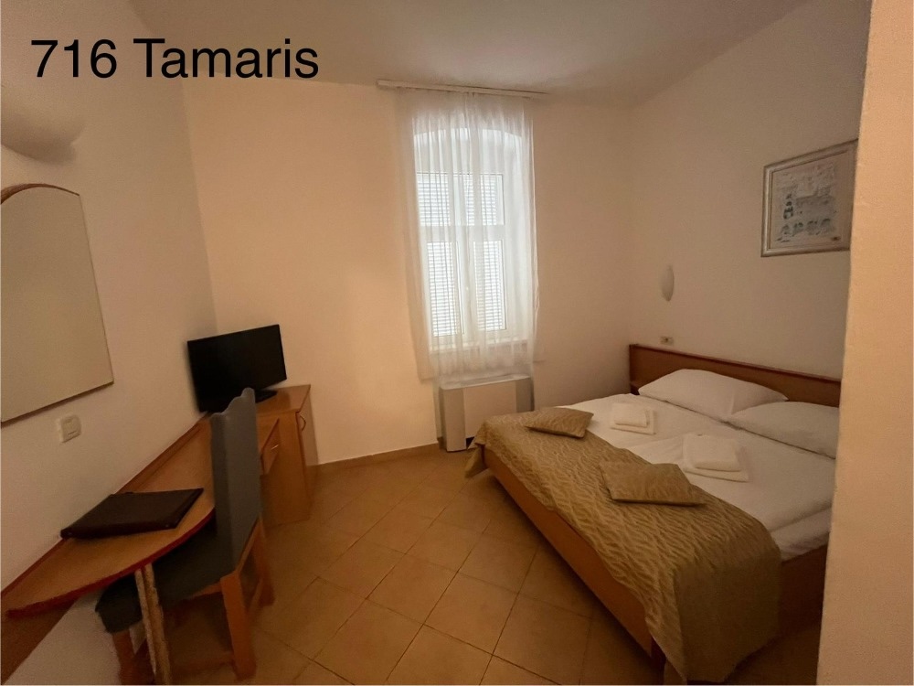 jednopatrová vila (bez výtahu), nabízí ubytování ve dvoulůžkových pokojích standart bez balkónu (s možností přistýlky pro dítě do 12 let), orientované na moře nebo do parku.