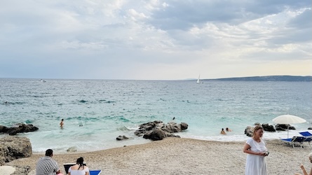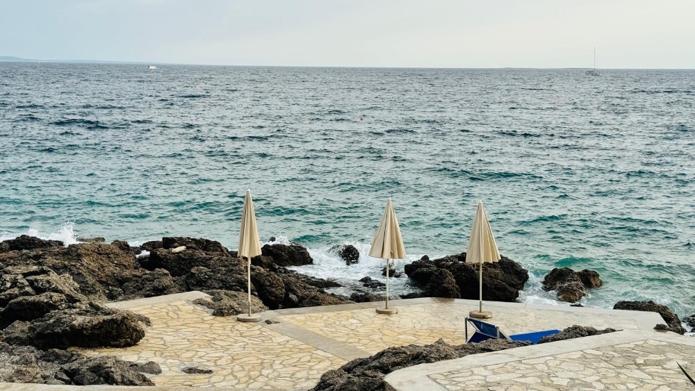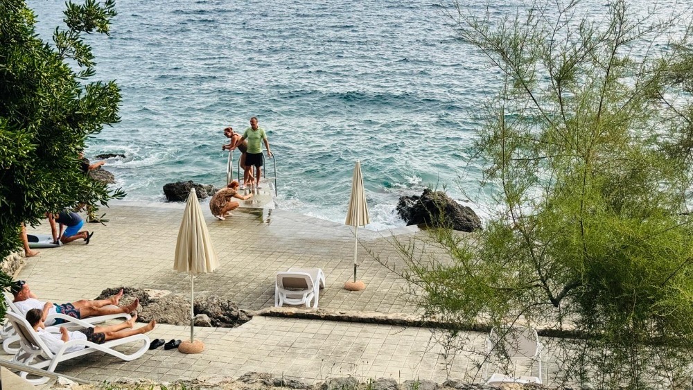 Poloha Villy Tamaris je jedinečná – přímo u pláže s nádhernými výhledy na moře i Staré město. Pláže jsou oblázkové i skalnaté s betonovými platy na ležení a se schůdky do moře, nebo s pozvolnými přístupy pro neplavce, a s průzračně čistou vodou. Pobřeží je lemováno vzrostlými borovicemi, poskytujícími přírodní stín. Možné je zapůjčení lehátek se slunečníky za poplatek. Necelé 2 km od hotelu se nachází naturistická pláž Tomaževo.