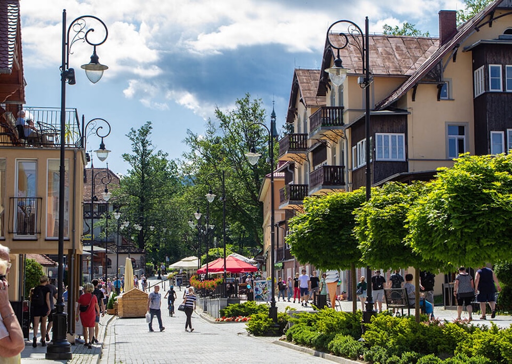 ZAKOPANE - leží na úpatí Tater 850 m n.m. a je hlavním městem zimních sportů. Známé je krásnými dřevěnými vilami z přelomu 19. a 20 stol., ve kterých sídlí muzea, penziony a hotely. Slavná ulice Krupówki je známou promenádou v Zakopaném v délce cca 1,5 km. V dolní části se nachází kostel Sanktuarium Svaté rodiny, o kousek dále Tatranské muzeum, Městská galerie současného polského umění. Malé návštěvníky zaujme Ocenárium s podmořskými živočichy, exotická Papugarnia s volně létajícími papoušky a mnohé jiné atrakce. Najdete zde škálu obchodů se suvenýry, řezbářskými výrobky, delikatesy, regionální speciality, i restaurace „Karczmy“ s tradičními polskými specialitami. Cesta k lanovce na Gubalówku vede skrz tržnici s bohatou nabídkou produktů od dřevěných výrobků po kožené doplňky, vlněné výrobky, ovčí sýry aj. potraviny. Z vyhlídkové terasy na Gubalówce (1123 m.n.m.) jsou nádherné výhledy na Tatry, Beskydy i Pieniny.