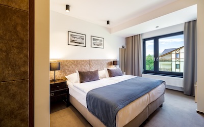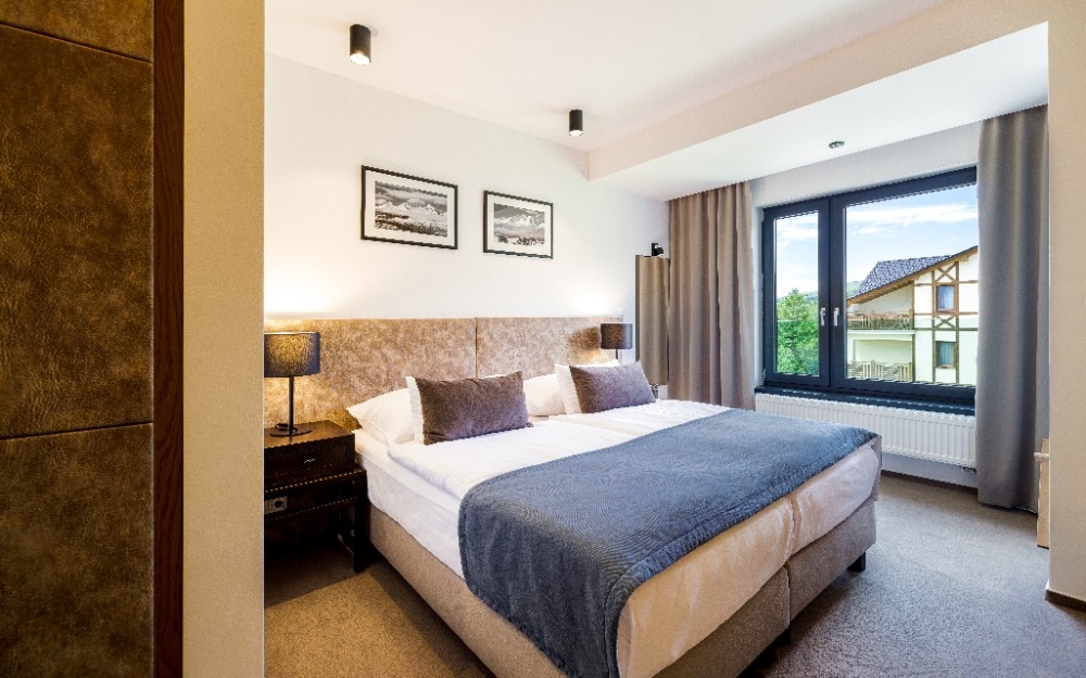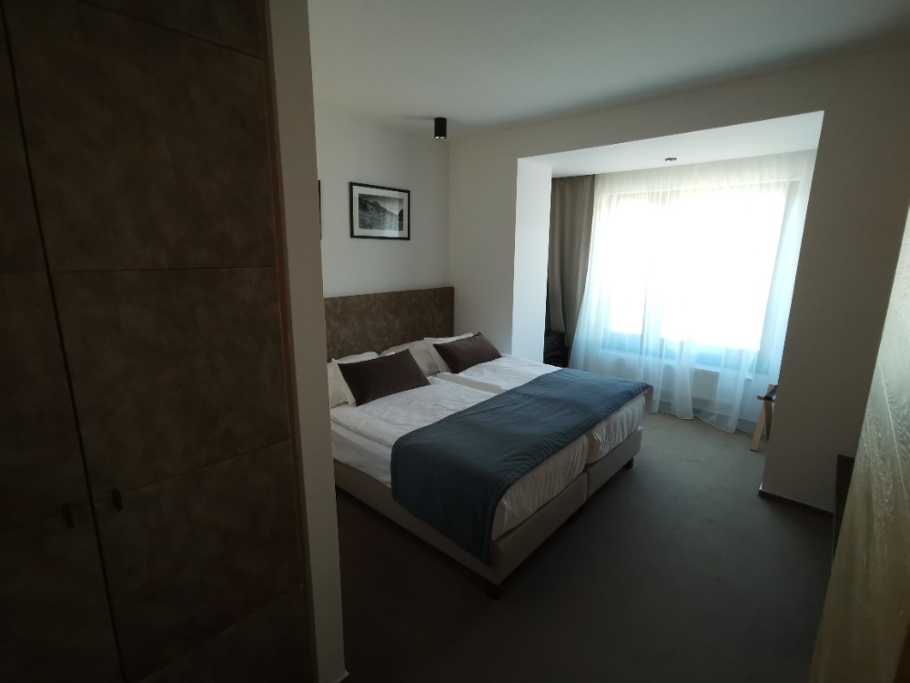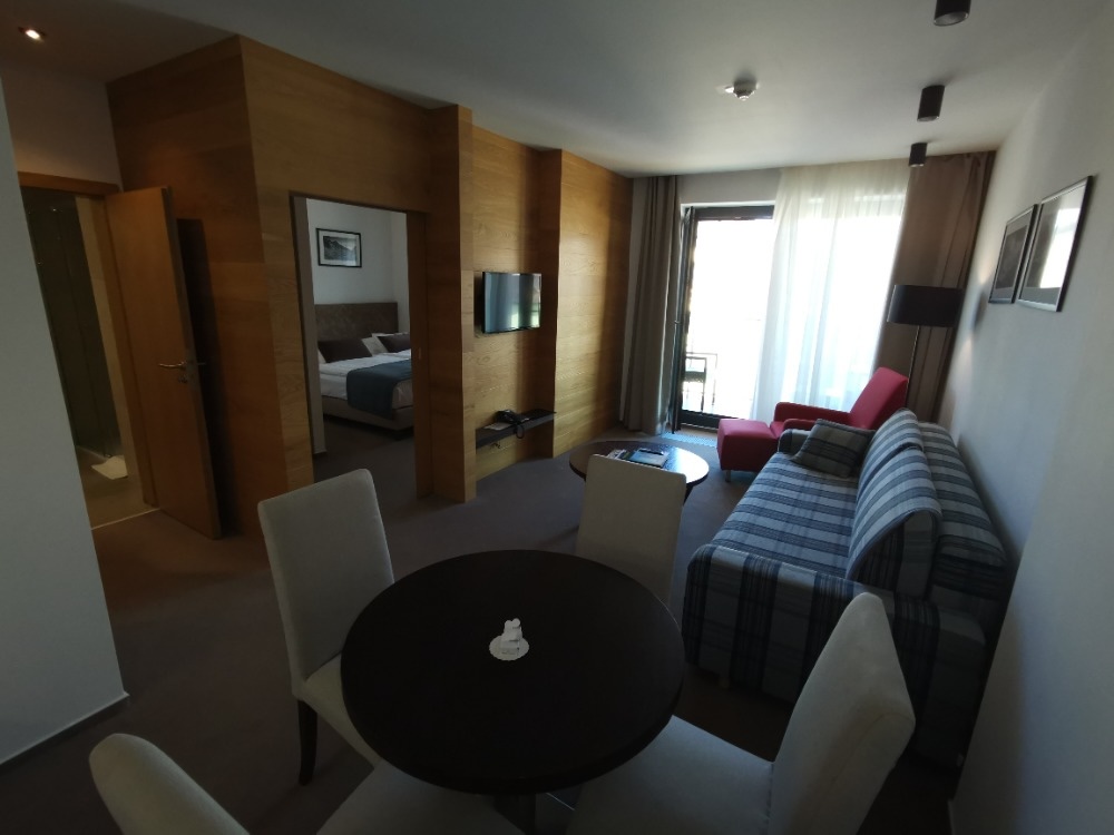 Hotel je vybaven výtahem, restaurací, lobby barem, recepcí. Nabízí ubytování v elegantně zařízených apartmánech s balkónem. Složení apartmánu: ložnice s pohodlným dvoulůžkem + denní místnost s rozkládací pohovkou, TV, wi-fi připojení, trezor, chladnička, varná konvice a koupelna (WC + sprcha) s luxusní toaletní kosmetikou L´Occitane, župany, fénem.