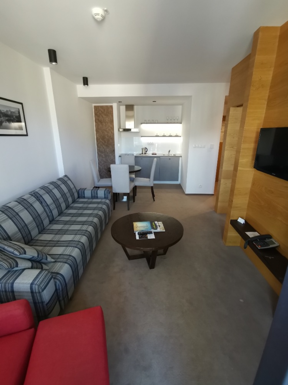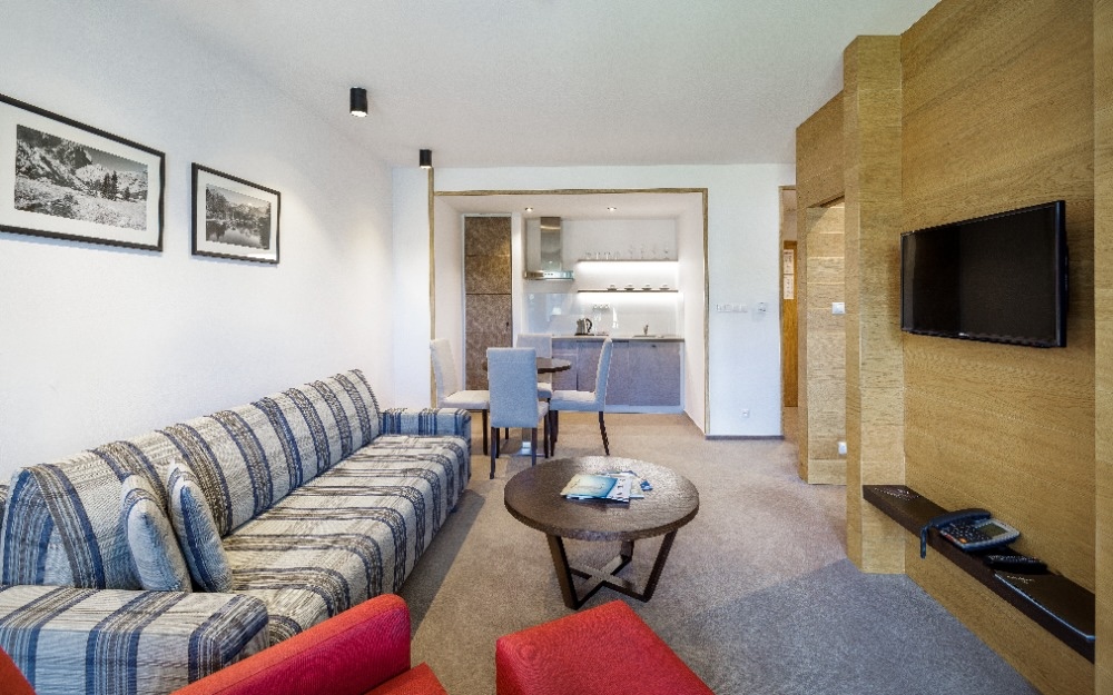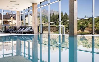 Ubytovaní hosté mohou využít profesionální fittness centrum, prosklený bazén s masážními prvky a s nádherným výhledem na Lomnický štít, wellness se 3 saunami, ochlazovacím vědrem, vnitřní vířivkou a nechat se hýčkat rozličnou nabídkou terapií – detoxikační, lávovými kameny, peelingové masáže, rituály pro páry.